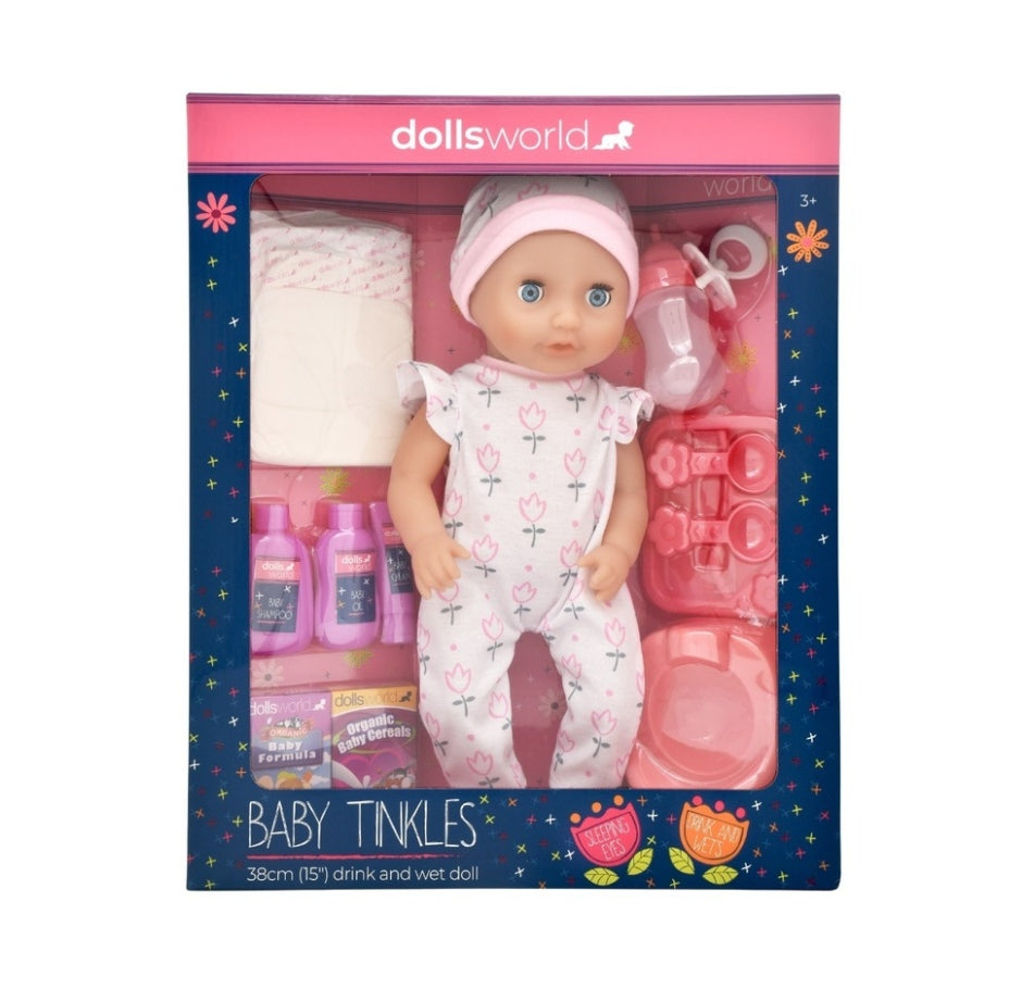 This Dolls World Baby Tinkles doll is designed to provide a realistic parenting experience for children through interactive play. It encourages children to engage in comprehensive parent-child interactions, fostering empathy, nurturing skills, and a love for the world of dolls.