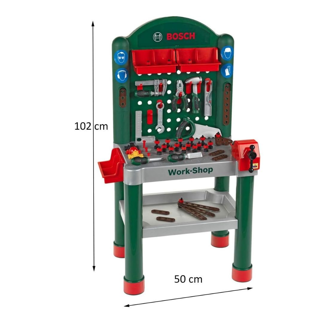 gnite your child's creativity and love for building with the Klein Theo 8320 Bosch Workshop! This comprehensive 79-piece playset is a dream come true for any aspiring builder aged 3 and up. In the authentic Bosch design, this workshop provides a safe and engaging environment for hands-on learning.