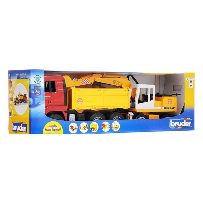Perfect for indoor and outdoor play, this construction set is designed to withstand the rigours of active play. Whether digging, loading, or transporting, the Bruder 1:16 Man TGA Truck and Liebherr Excavator will keep kids entertained for hours.