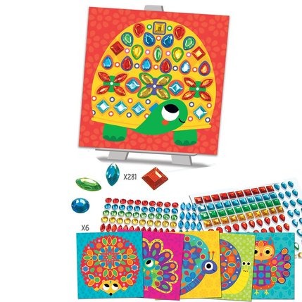 A kit that allows children to create beautiful, sparkling pictures using colored diamonds. Perfect for developing dexterity and fine motor skills in young children. Contains 6 animal pictures, 281 self-adhesive colored diamonds, a display easel, and instructions.
