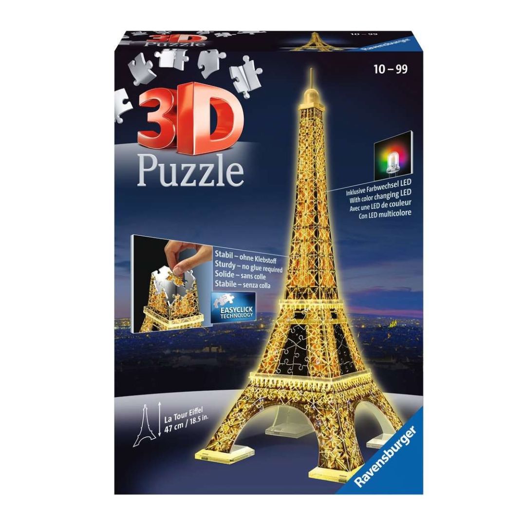 Bring Paris’s most famous landmark to life – day or night – with the Ravensburger Eiffel Tower 3D Puzzle, Night Edition!