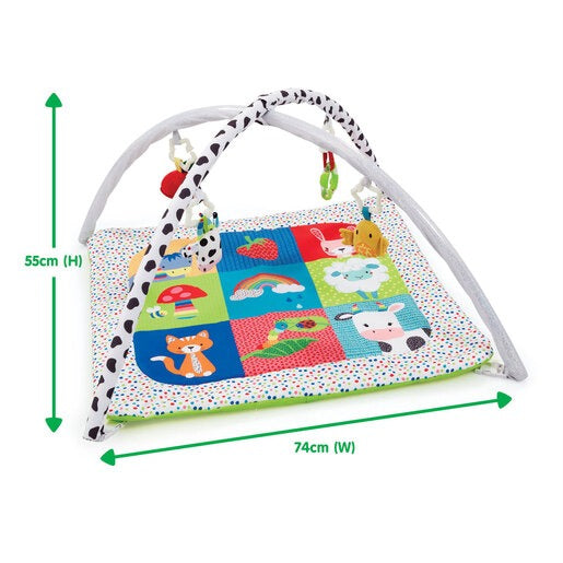 - A super-soft padded playmat featuring two removable arches and 4 detachable toys