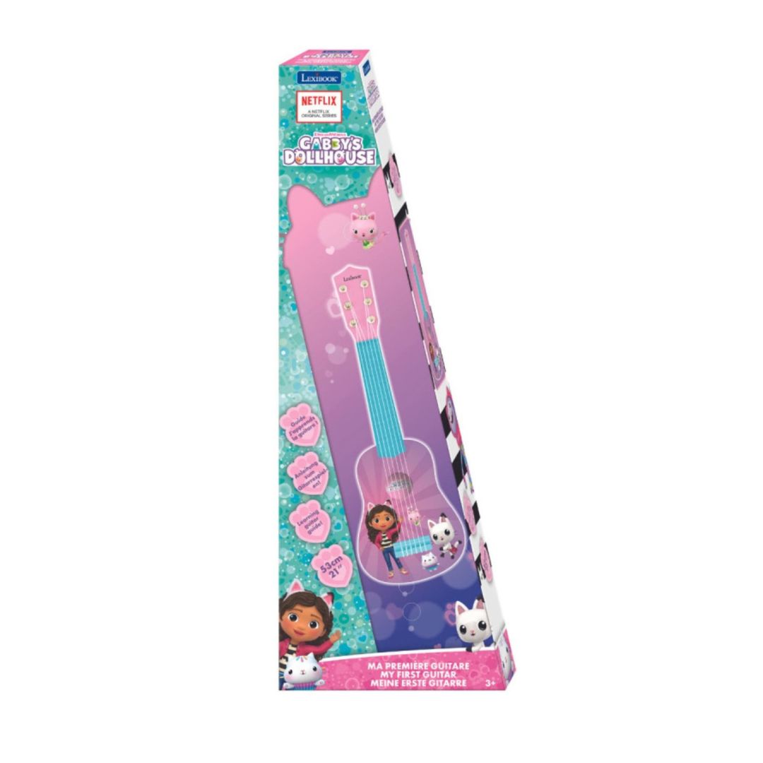The Lexibook Gabby's Dollhouse My First Guitar is a toy guitar designed for young children, specifically those aged 3 and up.