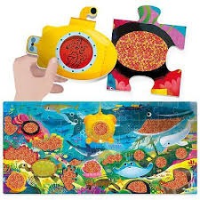 Dive into a world of underwater wonder with the HEADU Discover Puzzle: Yellow Submarine. This interactive set offers a unique "seek and find" adventure that goes far beyond a standard jigsaw. Once the vibrant underwater scene is assembled, children can use the included "magic" torch to reveal the hidden secrets of the ocean depths.