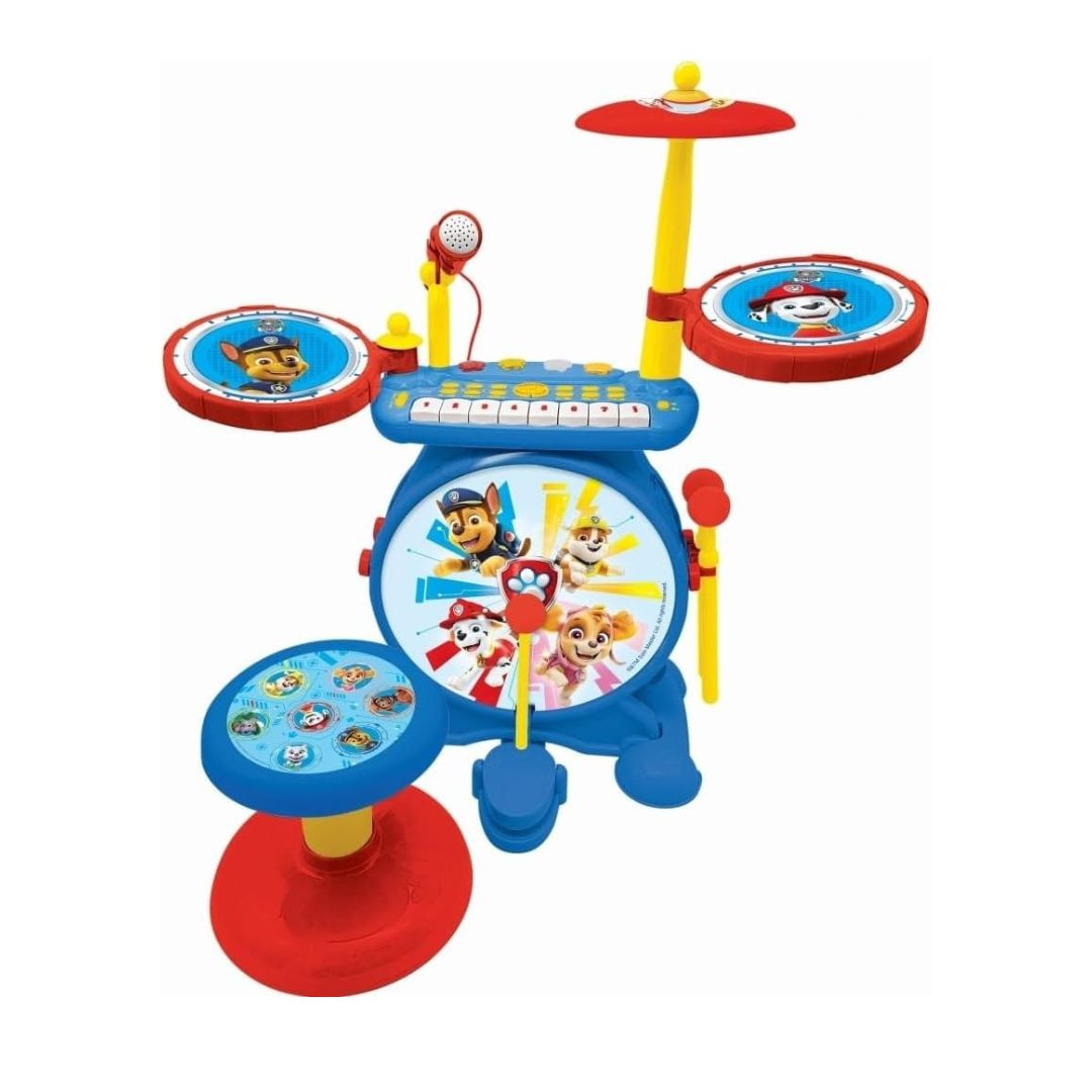The Lexibook Paw Patrol Chase Electronic Drum Set (K610PA) is a comprehensive musical toy that goes beyond just drumming. It's designed to be a "3-in-1" set for children who want to play, sing, and perform.