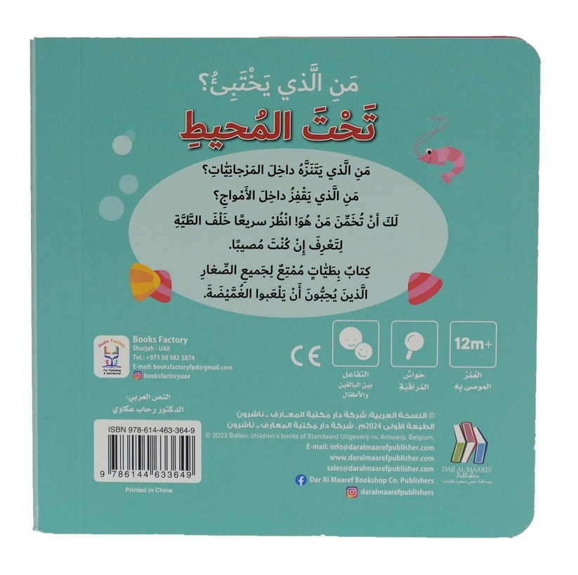 Dive into a world of hidden wonders! The "Who's Hiding?" series continues its interactive journey with Under the Ocean, a vibrant exploration of life beneath the waves. Crafted from high-quality, reinforced cardboard, this book is built to endure the curious tugs and pulls of little explorers as they dive deep to meet the colorful creatures of the sea.